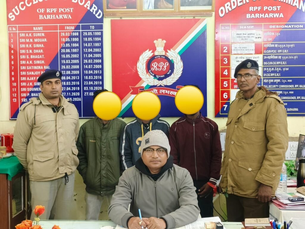 बरहरवा (साहिबगंज) रेलवे सुरक्षा बल (आरपीएफ) बरहरवा की सतर्कता से सोमवार की देर शाम मानव तस्करी की एक संभावित घटना टल गई। आरपीएफ इंस्पेक्टर बरहरवा संजीव कुमार के नेतृत्व में सोमवार रात 20:30 बजे से बरहरवा रेलवे स्टेशन परिसर में मानव तस्करी एवं अन्य असामाजिक गतिविधियों के विरुद्ध सघन जांच अभियान चलाया जा रहा था।इस दौरान इंस्पेक्टर संजीव कुमार के साथ सहायक उप निरीक्षक विनय कुमार टुडू, कांस्टेबल अमरेश कुमार एवं कांस्टेबल अनिल कुमार साह मौजूद थे। जांच के क्रम में जब आरपीएफ टीम स्टेशन के सर्कुलेटिंग एरिया में पहुंची, तो बुकिंग ऑफिस के पास तीन नाबालिग लड़के संदिग्ध अवस्था में खड़े दिखाई दिए।संदेह होने पर आरपीएफ कर्मियों ने जब उनसे पूछताछ की, तो तीनों घबरा गए और स्पष्ट जवाब देने से बचने लगे। कड़ाई से पूछने पर उन्होंने अपना नाम अनवर मोमिन (उम्र 16 वर्ष), राजेश किस्कू (उम्र 15 वर्ष) और सोहिल मिया (उम्र 16 वर्ष) बताया। पूछताछ में यह भी सामने आया कि एक नाबालिग थाना लिट्टीपाड़ा, जबकि दो थाना पाकुड़, जिला पाकुड़ के रहने वाले हैं। तीनों ने बताया कि वे आसपास के गांवों के निवासी हैं और एक-दूसरे को पहले से जानते हैं।आगे की पूछताछ में नाबालिगों ने खुलासा किया कि वे अपने माता-पिता को बिना बताए गांव के कुछ लड़कों के साथ बिहार के फतुहा स्थित एक बिस्किट कंपनी में काम करने जा रहे थे। उनकी गतिविधियां संदिग्ध पाए जाने पर आरपीएफ ने तीनों नाबालिगों को सुरक्षा की दृष्टि से आरपीएफ पोस्ट बरहरवा लाया।मामले की गंभीरता को देखते हुए बाल संरक्षण मंथन, राजमहल (साहिबगंज) को तुरंत सूचना दी गई। साथ ही तीनों नाबालिगों के परिजनों को मोबाइल फोन के माध्यम से घटना की जानकारी दी गई। सभी कानूनी औपचारिकताएं पूर्ण करने के उपरांत, तीनों नाबालिग लड़कों को बाल संरक्षण मंथन, राजमहल साहिबगंज की प्रतिनिधि अंशु मालाकार को सुरक्षित रूप से सौंप दिया गया।आरपीएफ की इस त्वरित और संवेदनशील कार्रवाई से न केवल तीन नाबालिगों की जान और भविष्य सुरक्षित हुआ, बल्कि मानव तस्करी जैसे गंभीर अपराध पर भी एक बार फिर प्रभावी रोक लगाई जा सकी।