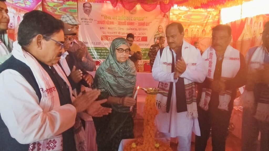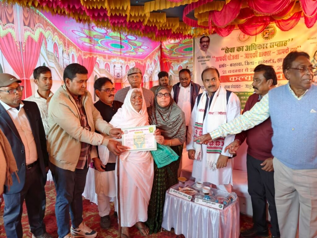 बरहरवा साहिबगंज,सेवा का अधिकार सप्ताह के अंतर्गत आहुतग्राम पंचायत में शुक्रवार को “आपकी योजना–आपकी सरकार–आपके द्वार” कार्यक्रम के तहत एक दिवसीय शिविर का भव्य आयोजन किया गया। शिविर में भारी संख्या में ग्रामीणों की भागीदारी रही, जिन्होंने मौके पर ही विभिन्न सरकारी योजनाओं एवं सेवाओं का लाभ उठाया।कार्यक्रम का उद्घाटन पाकुड़ विधानसभा की विधायक निसात आलम ने दीप प्रज्ज्वलित कर किया। उन्होंने कहा कि राज्य सरकार की सर्वोच्च प्राथमिकता है कि कल्याणकारी योजनाओं का लाभ प्रत्येक योग्य व्यक्ति तक सरल, पारदर्शी और जवाबदेहीपूर्ण तरीके से उपलब्ध हो। इसी उद्देश्य से इस अभियान को गांव-गांव तक पहुंचाया जा रहा है।
