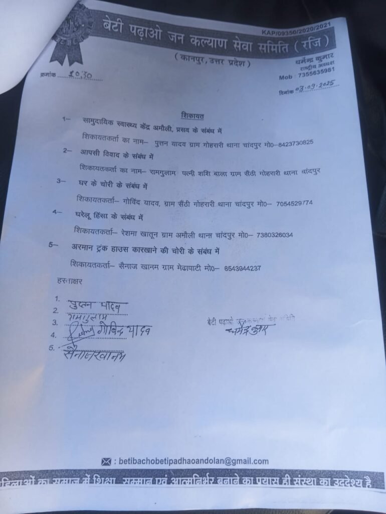 महिलाओं के साथ बेटी पढ़ाओ जनकल्याण सेवा समिति के राष्ट्रीय अध्यक्ष धर्मेन्द्र कुमार भी मौजूद रहे। उन्होंने पीड़ित महिलाओं की समस्याएं सुनकर जिलाधिकारी को ज्ञापन सौंपा और न्याय दिलाने की मांग की। महिलाओं का कहना है कि बीते दो महीनों में क्षेत्र में करीब 25 चोरी की घटनाएं हो चुकी हैं, लेकिन पुलिस अभी तक किसी भी मामले में ठोस कार्रवाई नहीं कर सकी है।