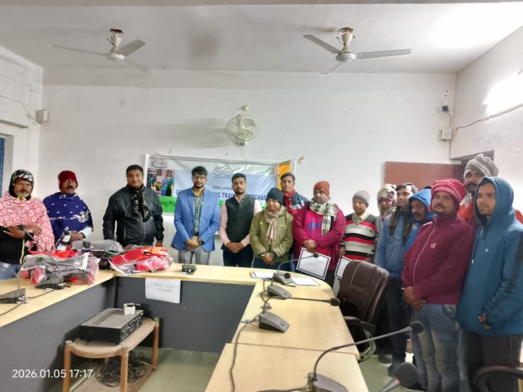 राजमहल (साहिबगंज)।राजमहल नगर पंचायत कार्यालय परिसर में सोमवार को सफाई मित्रों के लिए स्वच्छता एवं कार्य-कुशलता से संबंधित एक विशेष प्रशिक्षण कार्यक्रम का आयोजन किया गया। यह कार्यक्रम CDP & Skill Development Pvt. Ltd. के तत्वावधान में संपन्न हुआ, जिसमें प्रशिक्षक के रूप में दानिश हुसैन ने सफाई मित्रों को आधुनिक, सुरक्षित एवं प्रभावी सफाई तकनीकों की विस्तारपूर्वक जानकारी दी।प्रशिक्षण सत्र के दौरान सफाई मित्रों को ठोस एवं गीले कचरे के पृथक्करण, सुरक्षित सफाई उपकरणों के सही उपयोग, व्यक्तिगत स्वच्छता, कार्य के दौरान बरती जाने वाली सावधानियाँ, तथा स्वच्छ भारत मिशन के अंतर्गत उनकी महत्वपूर्ण भूमिका के बारे में व्यवहारिक जानकारी प्रदान की गई। प्रशिक्षण में इस बात पर विशेष जोर दिया गया कि सफाई कार्य करते समय स्वयं की सुरक्षा के साथ-साथ सार्वजनिक स्वास्थ्य की रक्षा भी अत्यंत आवश्यक है।प्रशिक्षक दानिश हुसैन ने अपने संबोधन में कहा कि “सफाई मित्र नगर की रीढ़ होते हैं। उनकी कार्यकुशलता और सुरक्षा सुनिश्चित किए बिना स्वच्छ एवं स्वस्थ समाज की परिकल्पना संभव नहीं है। ऐसे प्रशिक्षण कार्यक्रम सफाई मित्रों को सशक्त बनाने में महत्वपूर्ण भूमिका निभाते हैं।” उन्होंने भविष्य में भी नियमित अंतराल पर इस तरह के प्रशिक्षण आयोजित किए जाने की आवश्यकता पर बल दिया।कार्यक्रम में उपस्थित नगर पंचायत के अधिकारियों ने इस पहल की सराहना करते हुए कहा कि इस प्रकार के प्रशिक्षण से सफाई मित्रों का मनोबल बढ़ता है, उनके कार्य में व्यावसायिकता आती है, और नगर की स्वच्छता व्यवस्था और अधिक मजबूत होती है। अधिकारियों ने उम्मीद जताई कि प्रशिक्षित सफाई मित्र अपने कार्यों को और अधिक जिम्मेदारी एवं दक्षता के साथ संपादित करेंगे।प्रशिक्षण कार्यक्रम के समापन अवसर पर सभी सफाई मित्रों ने प्रशिक्षण के दौरान प्राप्त जानकारियों को अपने दैनिक कार्यों में अपनाने तथा नगर को स्वच्छ, सुंदर और रोगमुक्त बनाए रखने में पूरी निष्ठा से योगदान देने का संकल्प लिया।