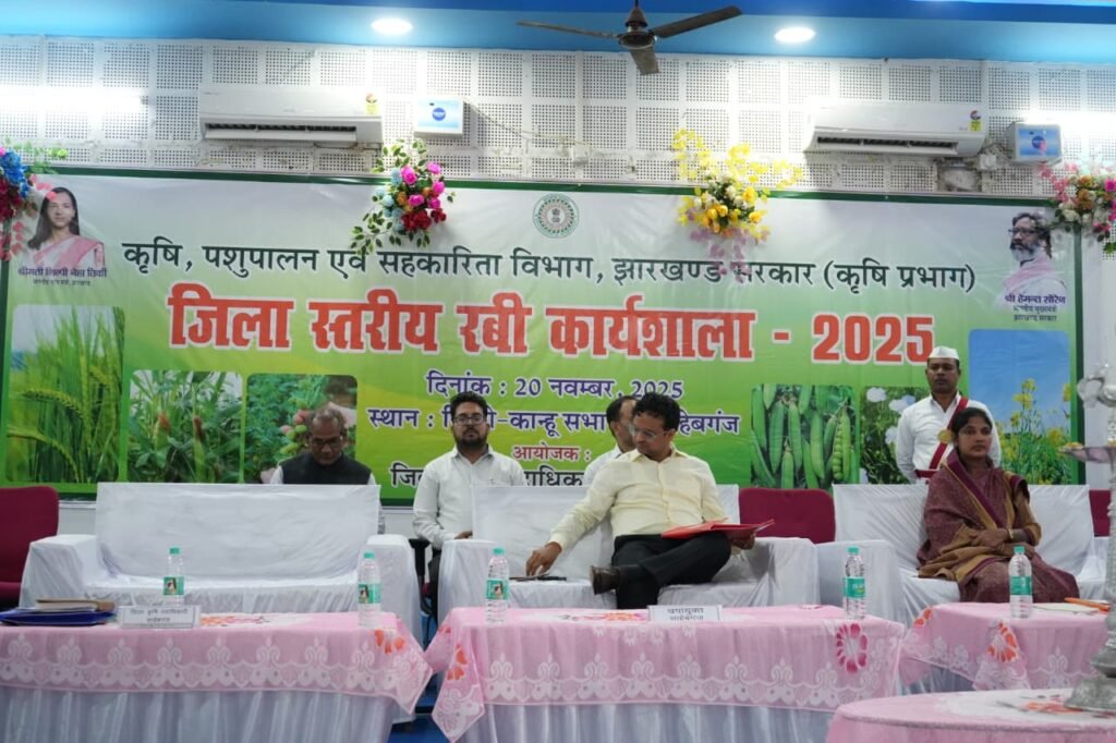 साहिबगंज, कृषि, पशुपालन एवं सहकारिता विभाग, झारखंड सरकार के निदेशानुसार सिद्धो–कान्हू सभागार, साहिबगंज में जिला स्तरीय एक दिवसीय रबी कार्यशाला का सफल आयोजन किया गया। कार्यशाला का शुभारंभ मुख्य अतिथि उपायुक्त हेमंत सती द्वारा दीप प्रज्वलित कर किया गया। विशिष्ट अतिथि के रूप में जिला परिषद अध्यक्षा एवं उप विकास आयुक्त साहिबगंज उपस्थित रहे।उपायुक्त हेमंत सती ने कृषि एवं संबद्ध विभागों के पदाधिकारियों, प्रखण्ड कृषि पदाधिकारी, बीटीएम/एटीएम तथा कृषक मित्रों को किसानों से सीधे जुड़कर कार्य करने का निर्देश दिया। उन्होंने सभी प्रखण्डों में रबी कार्यशालाएँ आयोजित कर अधिक-से-अधिक किसानों की भागीदारी सुनिश्चित करने तथा समय पर बीज वितरण पर विशेष बल दिया।उप विकास आयुक्त ने आपकी योजना–आपकी सरकार–आपके द्वार अभियान के दौरान अधिकाधिक किसानों को किसान क्रेडिट कार्ड उपलब्ध कराने की आवश्यकता पर जोर दिया।